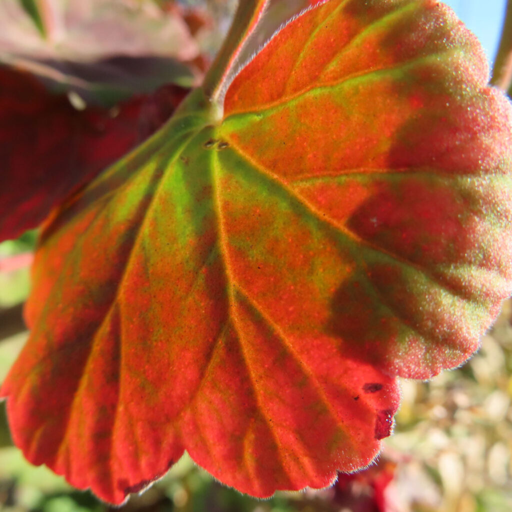 ゼラニウムの葉の1枚が綺麗に紅葉していました🍁
