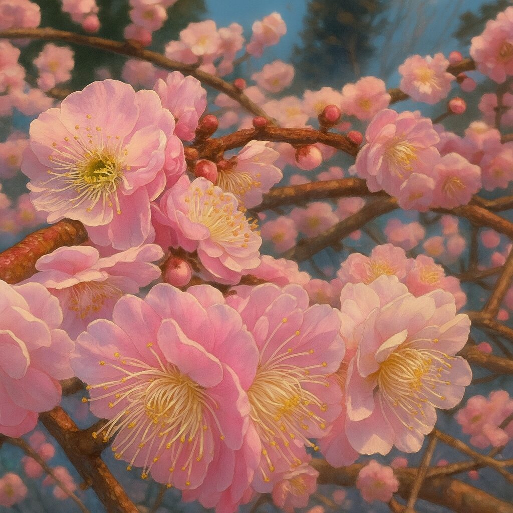 - 花梅系:八重寒紅、思いのまま、冬至 など