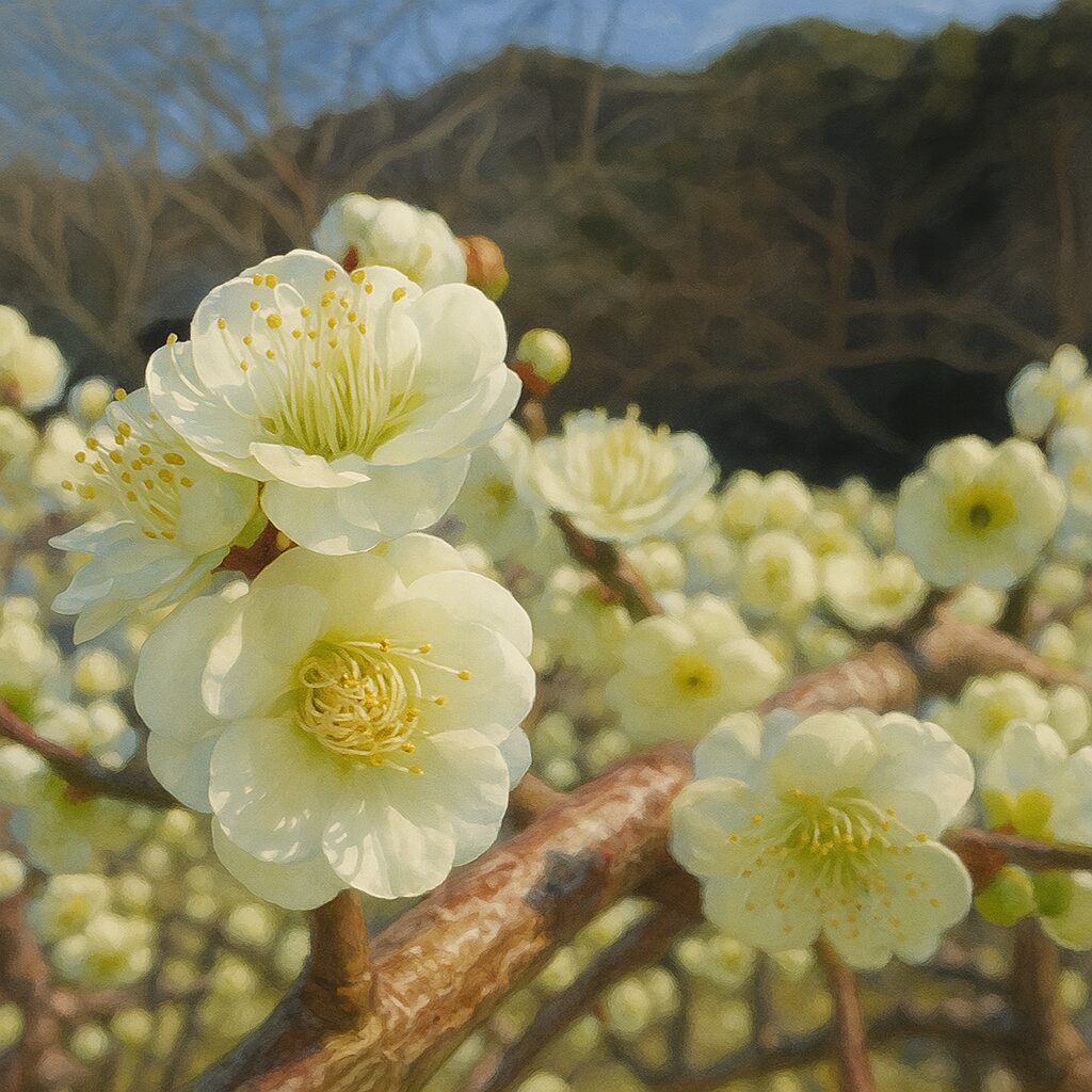 - 花:白~紅色で香り高く、早春(1~3月)に開花