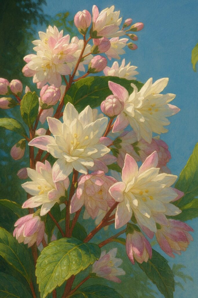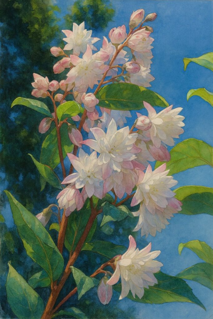 和名の空木と花言葉の「秘密」は、茎の中が空洞であることに由来しています。また、「古風」の花言葉は、どこか懐かしく風情のある花姿にちなんでいます。