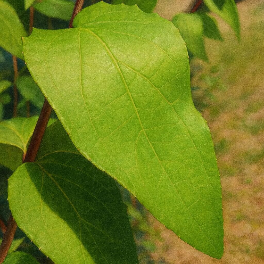 - 葉:対生し、卵状長楕円形。星状毛が生えてざらついた手触り