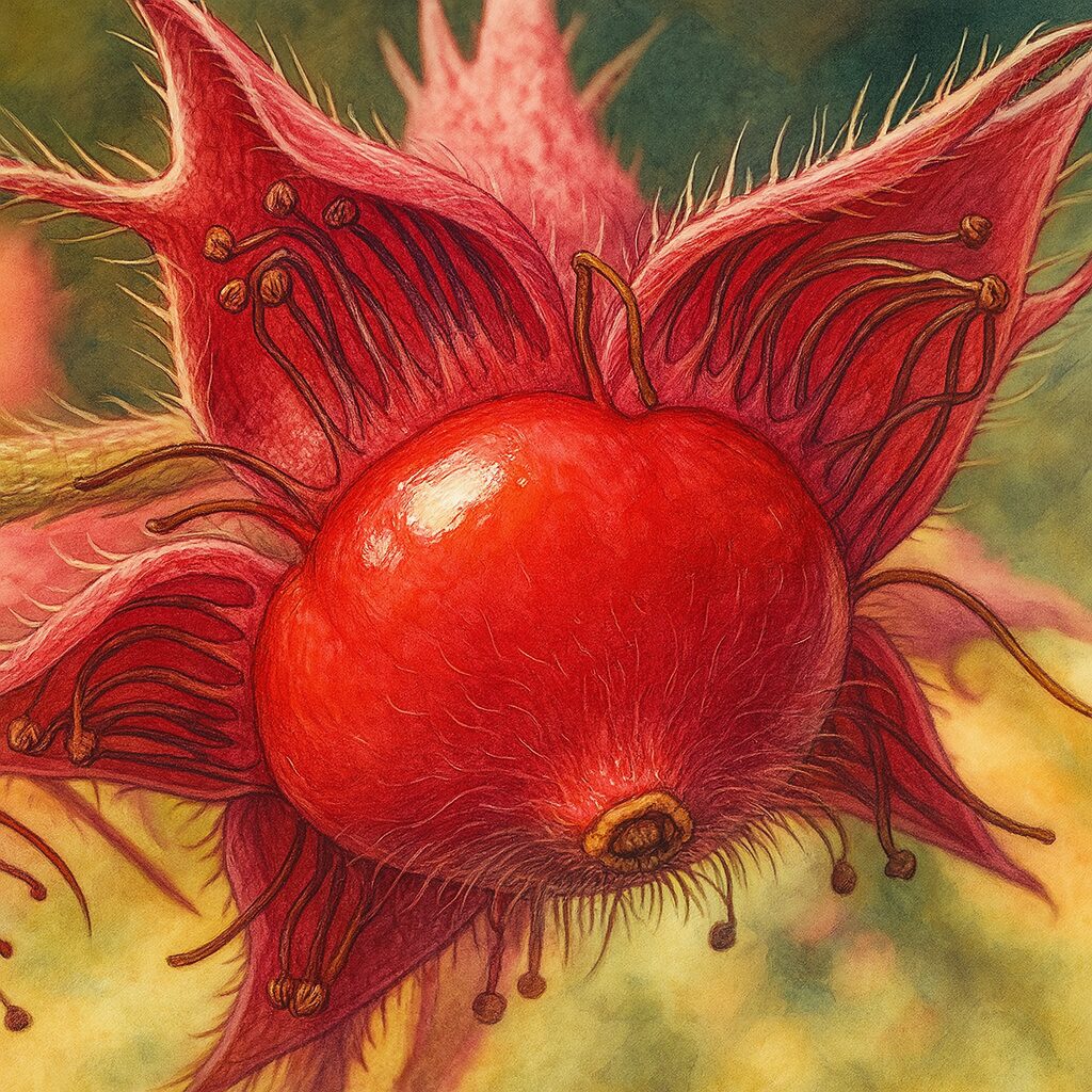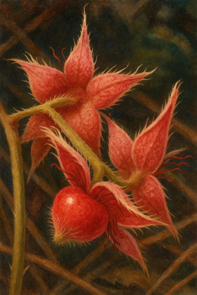フユイチゴ(冬苺)は、バラ科キイチゴ属の常緑つる性小低木で、冬に実がなる珍しい野生の木イチゴです。別名は「カンイチゴ」。果実は食用となり、見た目や時期から「クリスマスチェリー」として流通することもあります。