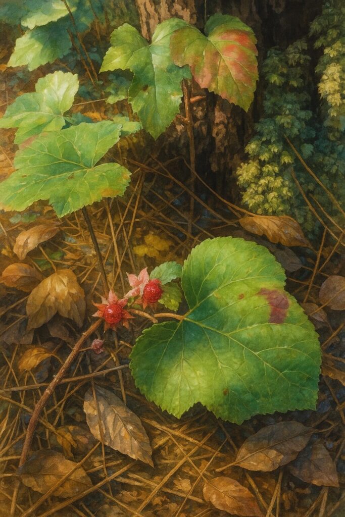 | ミヤマフユイチゴ | 葉が三角形でやや尖る。 |