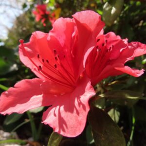ツツジは1つの花で見ると、同じ色のものが多いです。中には花びらの1枚が多少違う色だったり内側が濃い色のものだったりするものもありますが稀です。しかも花びら1枚が大きいので、意識せずに撮ると平面的で感覚で言うとベタッとした写真になりがちです。そのような写真はあまり良いものではありませんので、花に立地感をプラスしたいものです。そこで光の活用を意識してみてください。この意識を持ってカメラを覗くと平面的だったツツジが立体的に見えてきます。