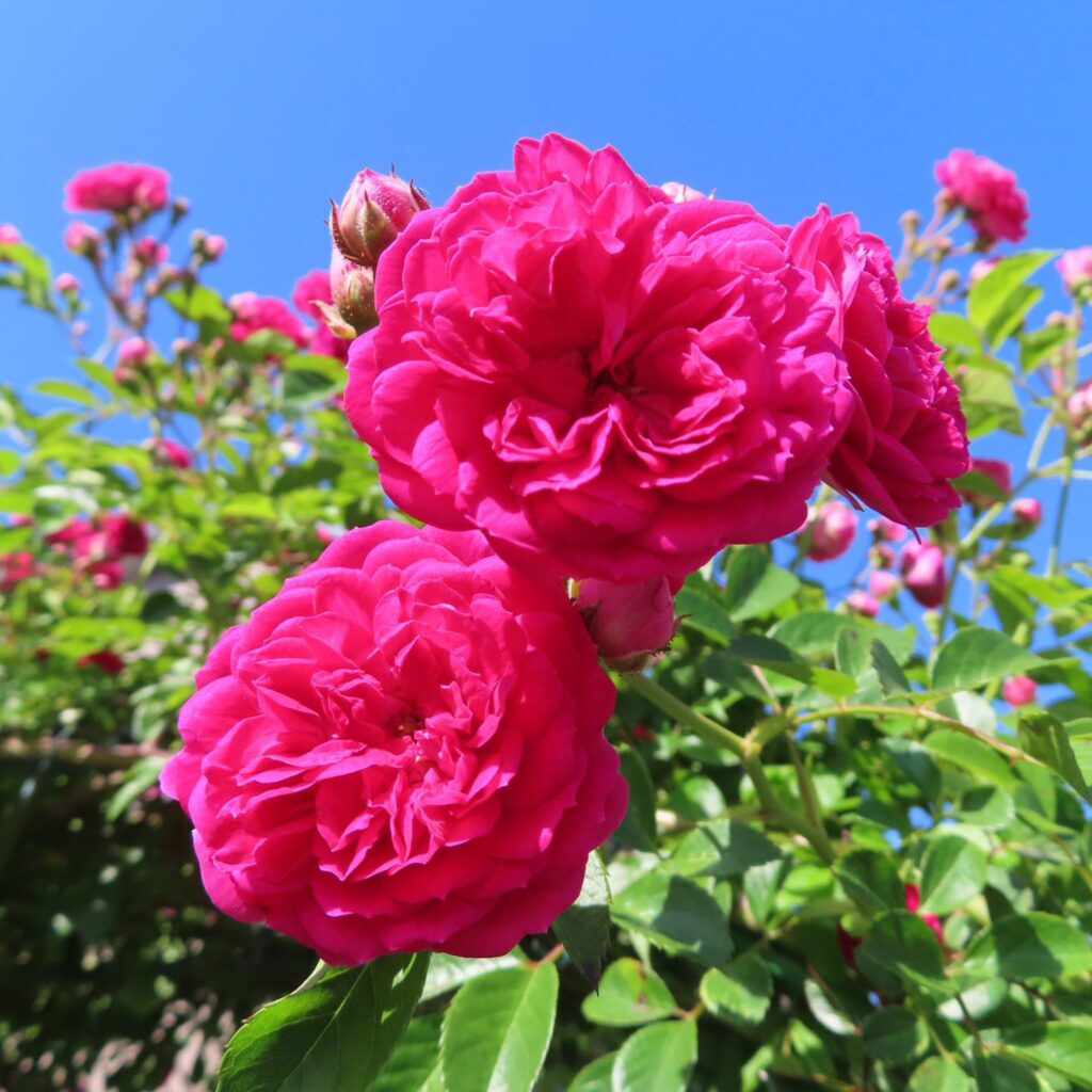 バラは一斉に花を咲かせますよね。たくさん咲いた花を多く写真に入れて賑やかで綺麗な写真を撮ってみたい方も多いと思います。このような写真は、この記事の最初にお伝えしたように明確な意識がないとなんとなくぼんやりとした何を伝えたいのか分からない写真になってしまいます。そうならないためにどのような撮り方のコツがあるのかお伝えします。賑やかでリズムのある写真を撮ってみましょう。