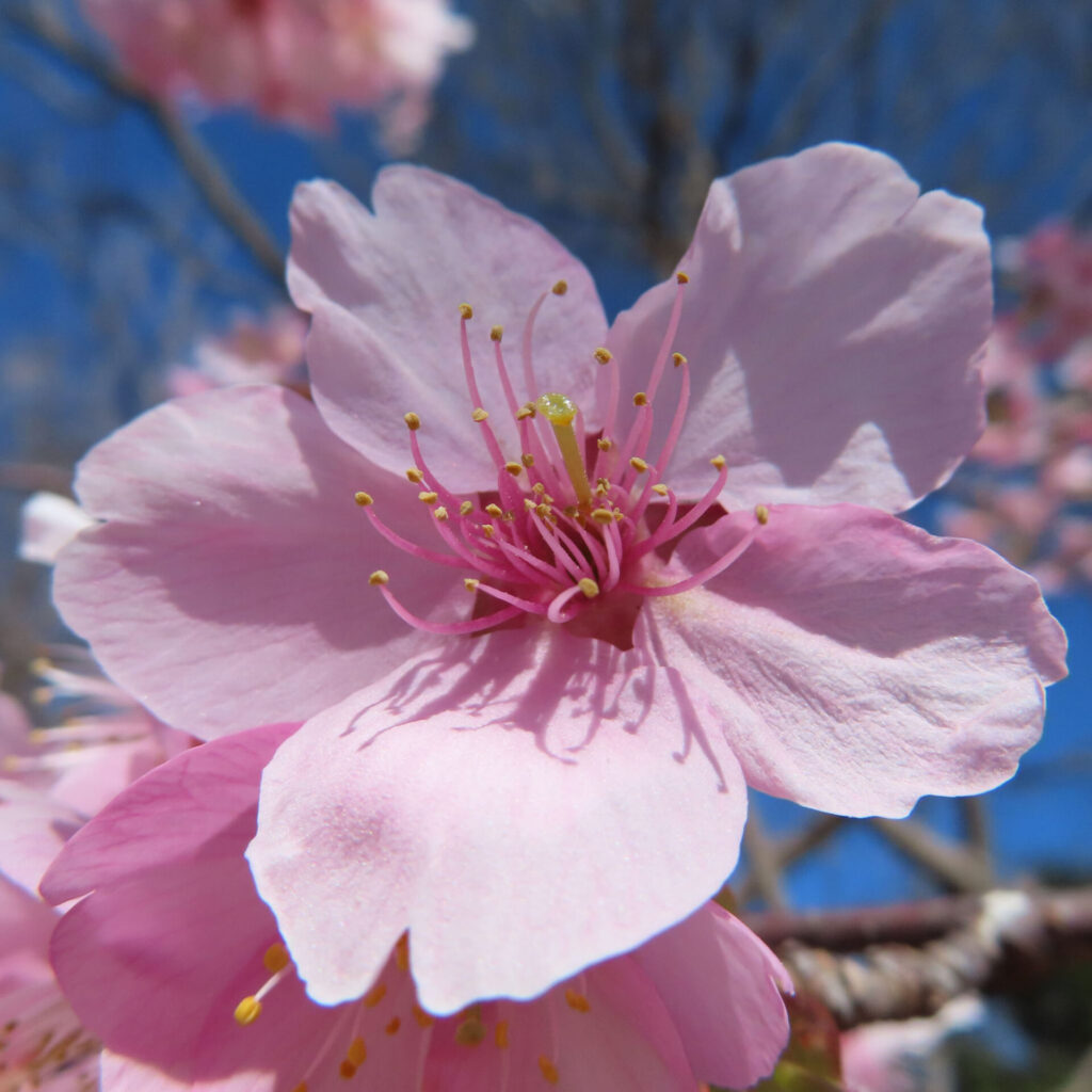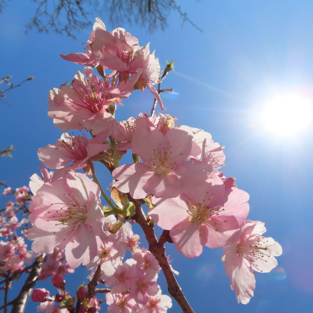 - カンヒザクラの影響で開花が非常に早く、1ヶ月近く咲き続ける