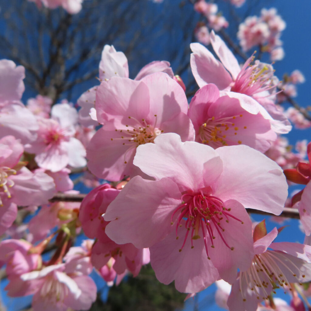 - 花期:2月上旬~3月上旬(東京)、最盛期は2月中旬(静岡県河津町)