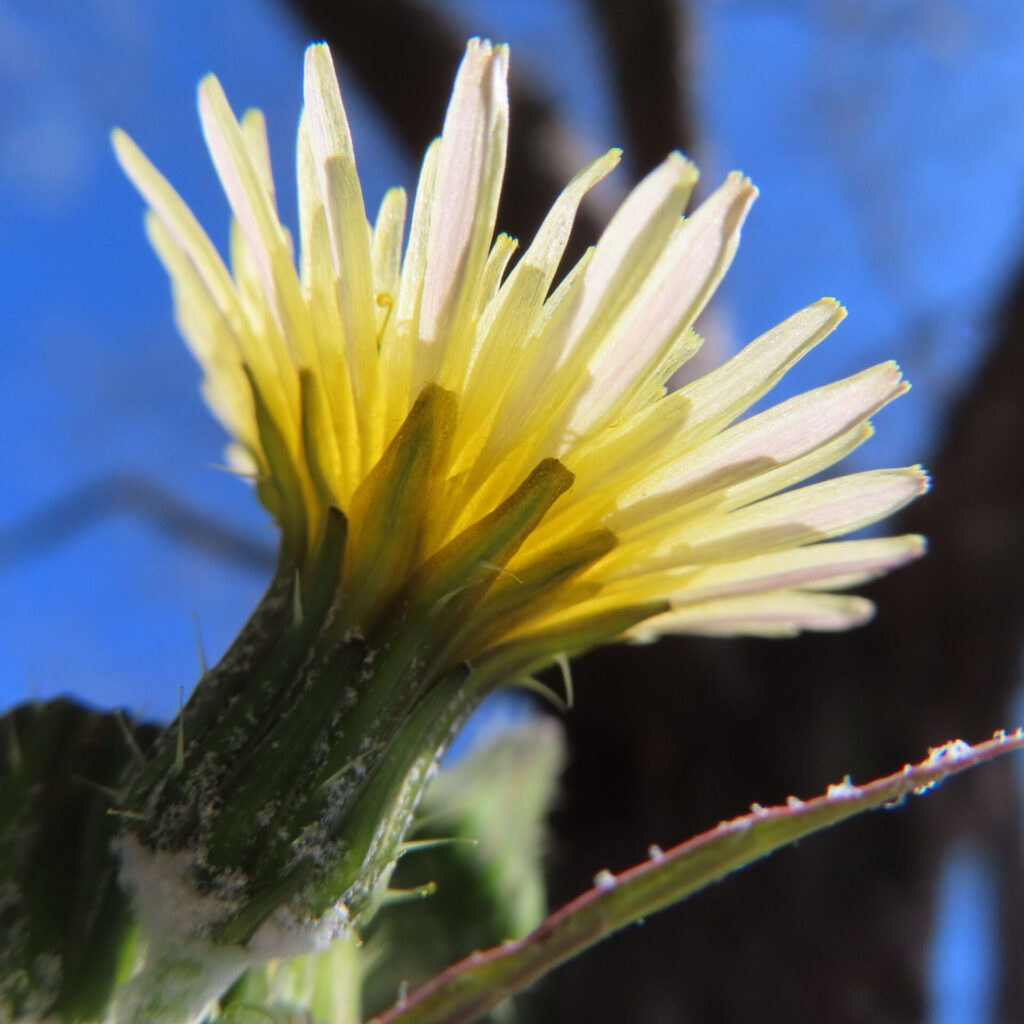 - 花の特徴:直径約2cm、舌状花のみ。総苞は二層構造で腺毛があり、外片は内片より短い。