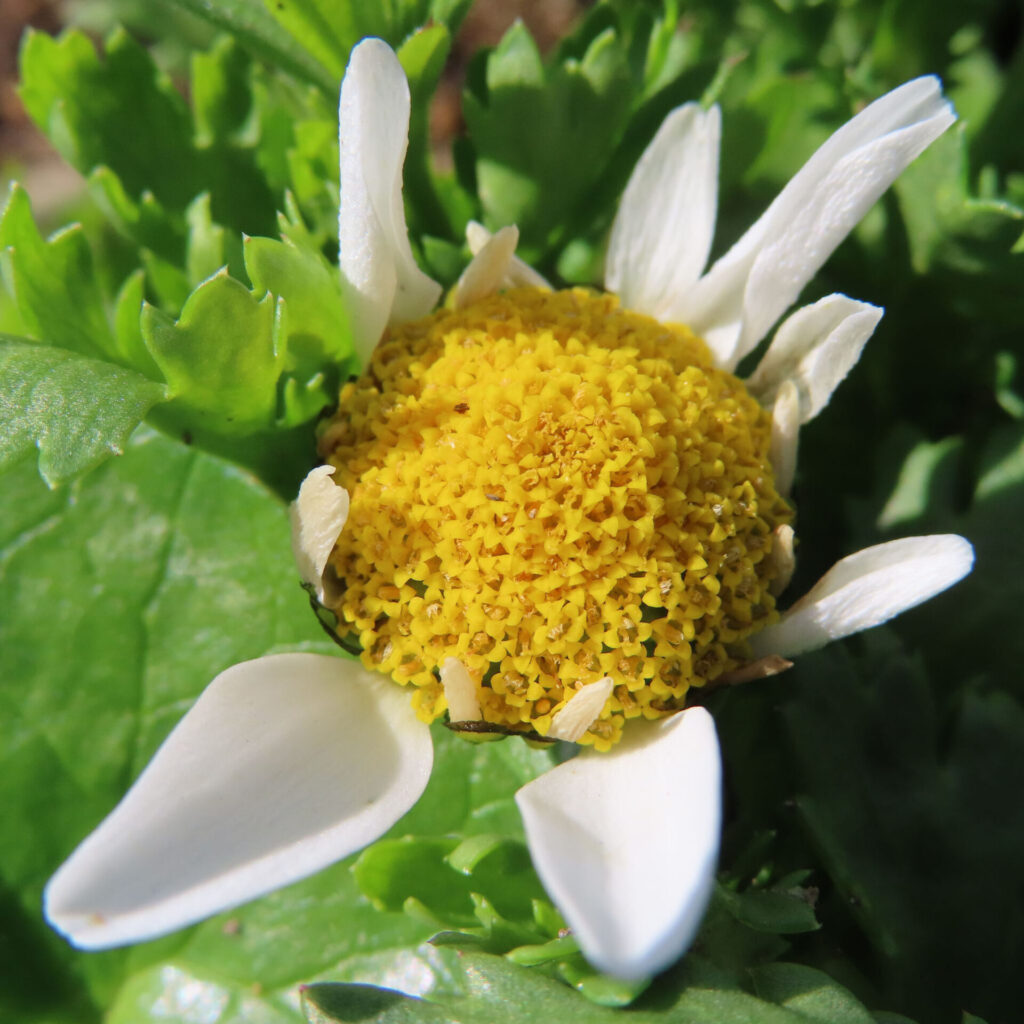カンシロギク(寒白菊、Leucanthemum paludosum)は、キク科フランスギク属の草花で、「ノースポールギク」という名でも親しまれています。白い花が株全体を覆うように咲く姿が「北極(ノースポール)」を連想させることからこの名が付けられました。原産地では多年草ですが、日本では高温多湿に弱いため一年草として扱われます。